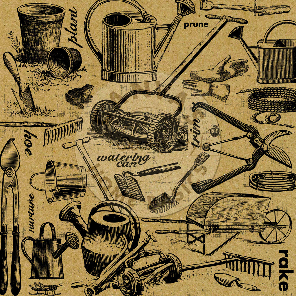 Vintage garden art on recycled kraft paper. Ideal for invitations, card bases, garden crafts and more.