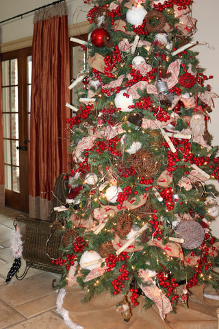 A full size burlap tree skirt that is perfect as it is or embellish or personalize. Design your own holiday tree skirt with this 58" diameter size skirt. Made from high quality burlap it can be screen printed, monogrammed, crafted or sewn. The center is cut out to make room for the tree and there are ties along the back slit.