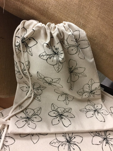 This wonderful printed backpack features black floral art that is perfect just as it is or ready to be decorated your way. Designed and made in Springdale, Arkansas, this backpack is ideal for paint your own shops, classes, scouts, school activities, teacher gifts, holiday gifts and so much more. Made of 100% cotton this tote can be painted, dyed, inked, etc. to personalize it your way.